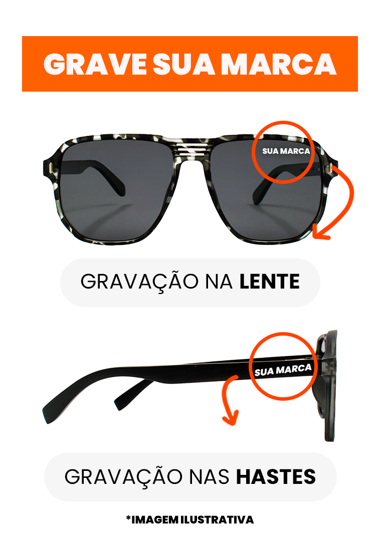 A armação é feita de Acetato e Madeira, e é protegida contra a corrosão.