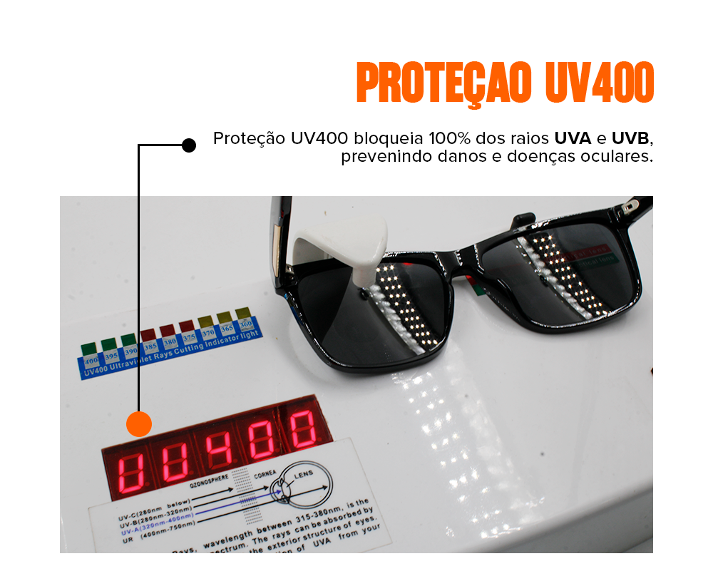 Nossos óculos são protegidos contra descascamentos provocados por suor e água.