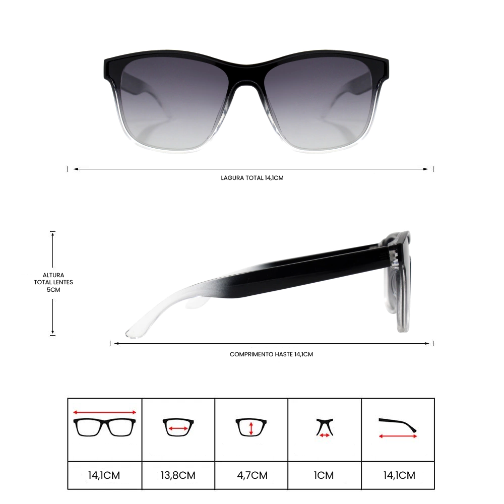 A armação é feita de Acetato e é protegida contra a corrosão.