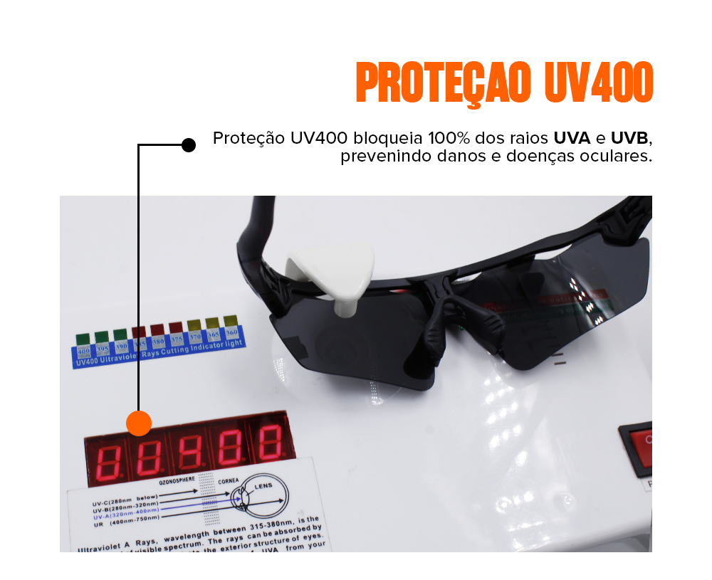 Nossos óculos são protegidos contra descascamentos provocados por suor e água.