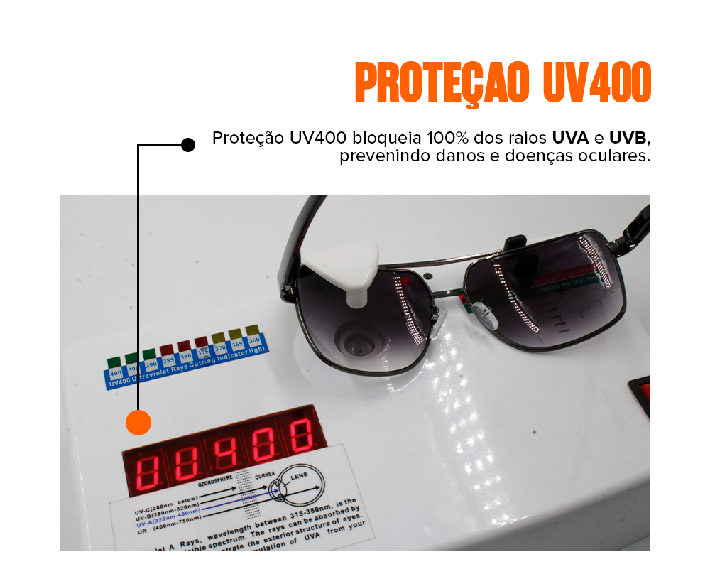 A armação é feita de Metal e Acetato, e é protegida contra a corrosão.