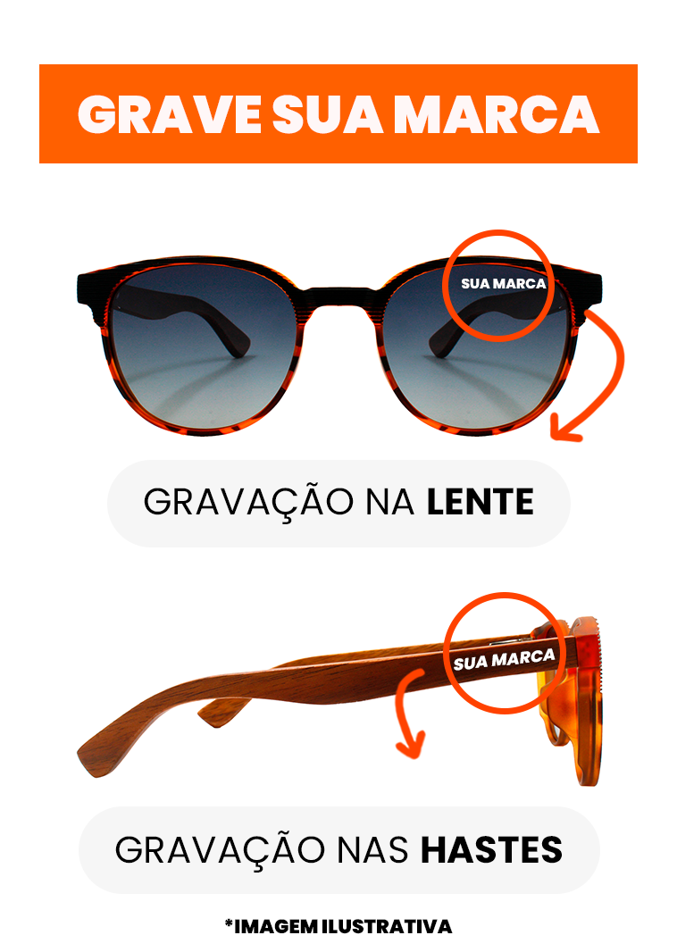 A armação é feita de Acetato Madeira, e é protegida contra a corrosão.
