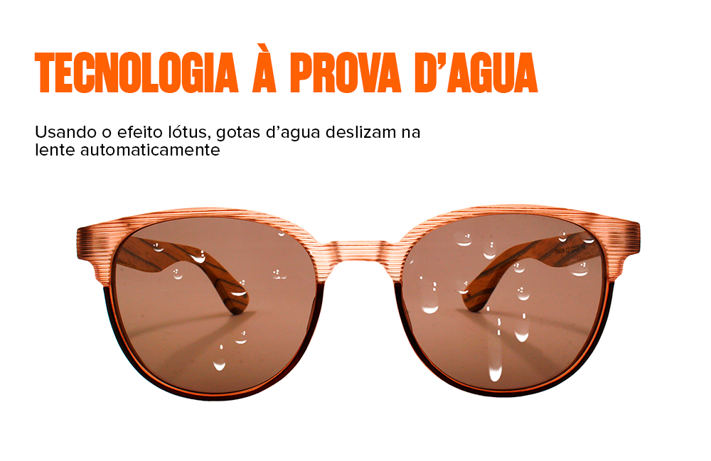 A armação é feita de Acetato Madeira, e é protegida contra a corrosão.