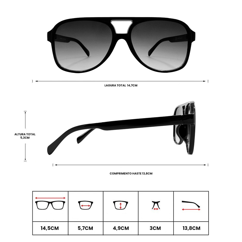A armação é feita de Acetato, e é protegida contra a corrosão.