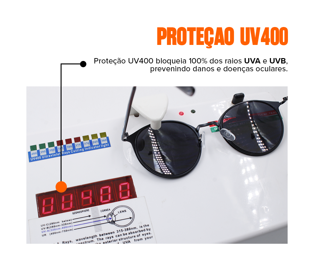 Nossos óculos são protegidos contra descascamentos provocados por suor e água.