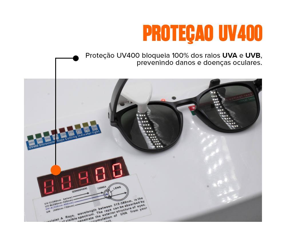 Nossos óculos são protegidos contra descascamentos provocados por suor e água.