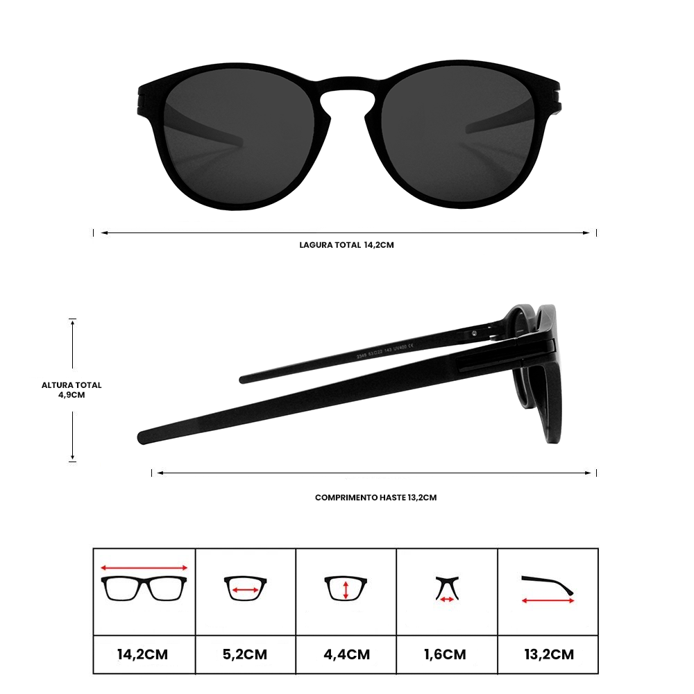 A armação é feita de Acetato, Material Injetado, e é protegida contra a corrosão.