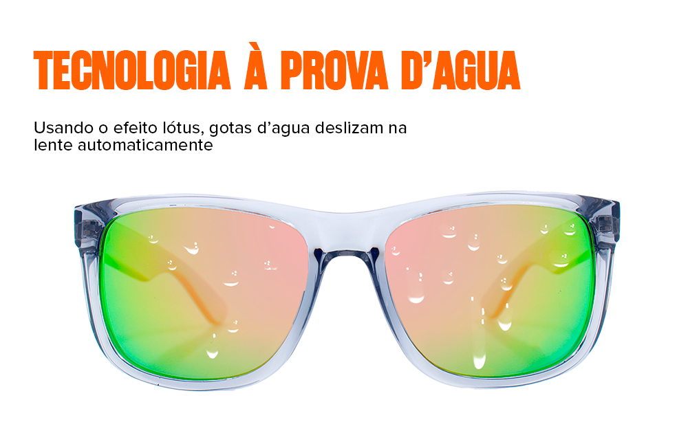 Nossos óculos são protegidos contra descascamentos provocados por suor e água.