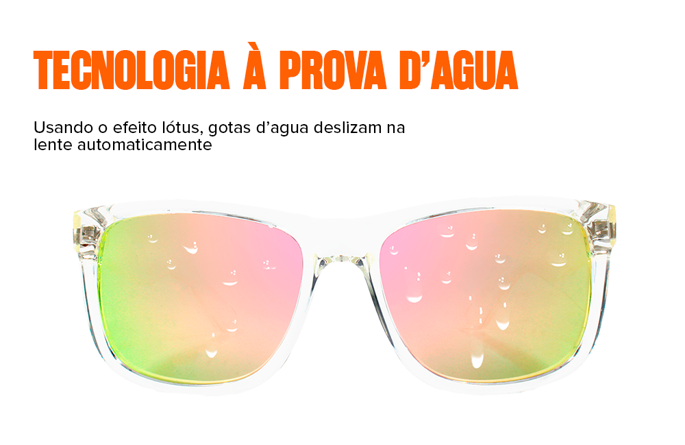 Nossos óculos são protegidos contra descascamentos provocados por suor e água.