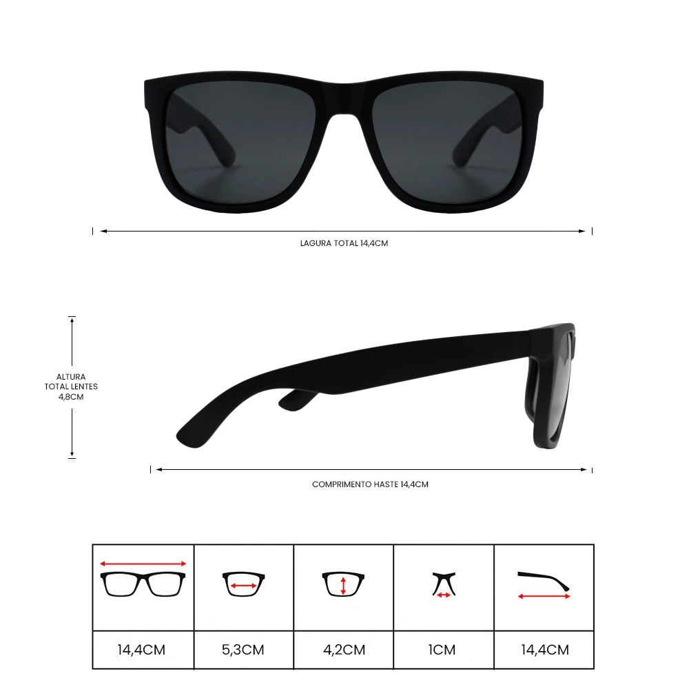 A armação é feita de Acetato, e é protegida contra a corrosão.