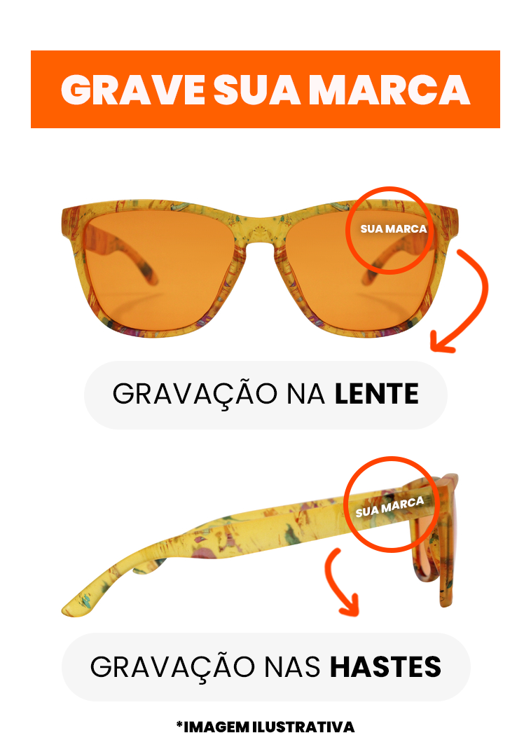 A armação é feita de Acetato, é protegida contra a corrosão.