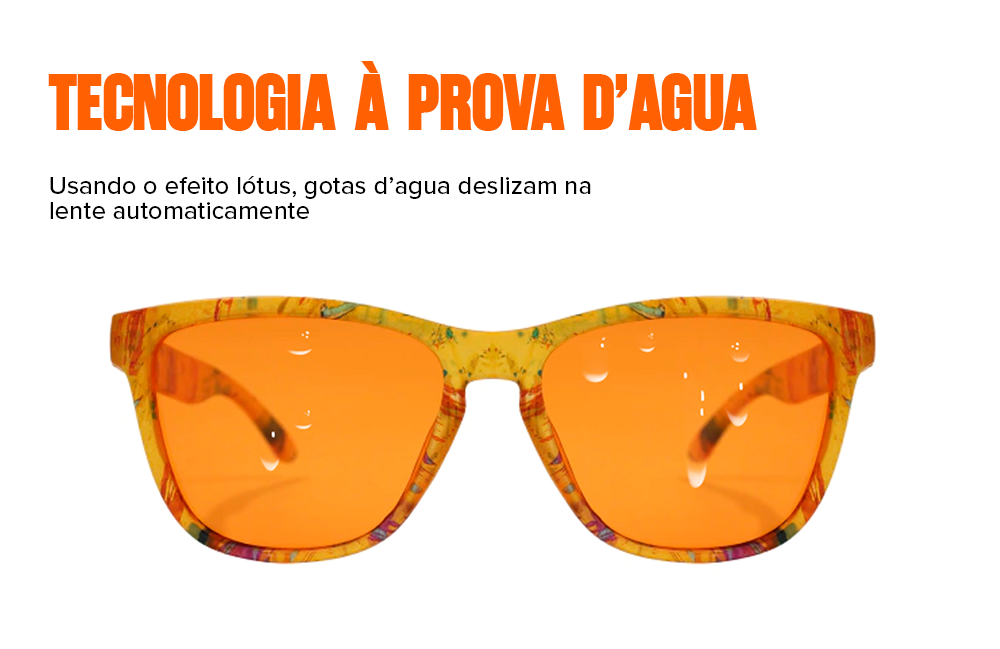 Nossos óculos são protegidos contra descascamentos provocados por suor e água.