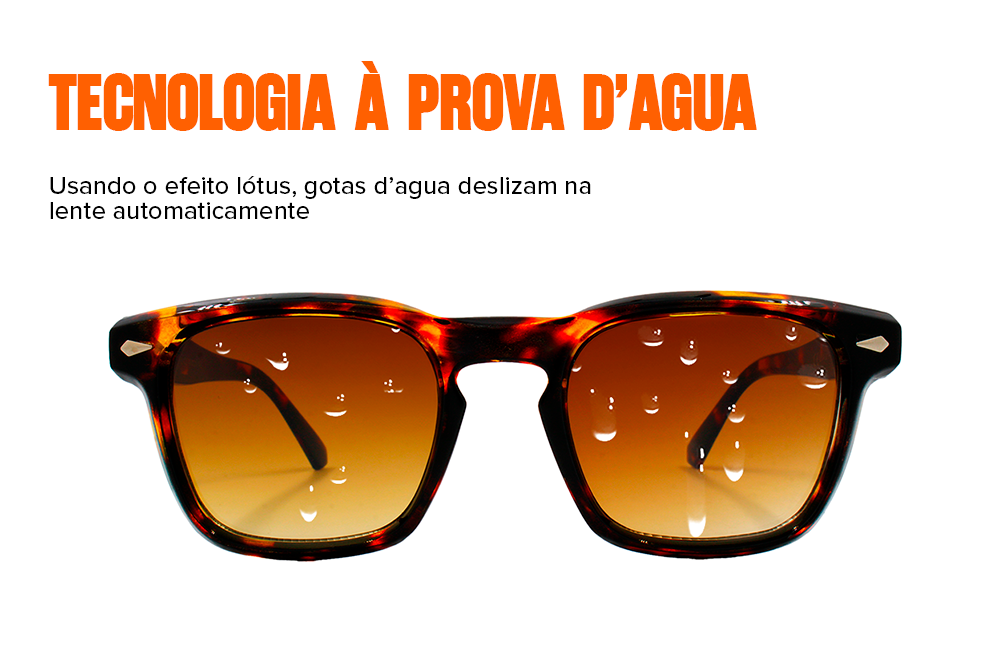 Nossos óculos são protegidos contra descascamentos provocados por suor e água.