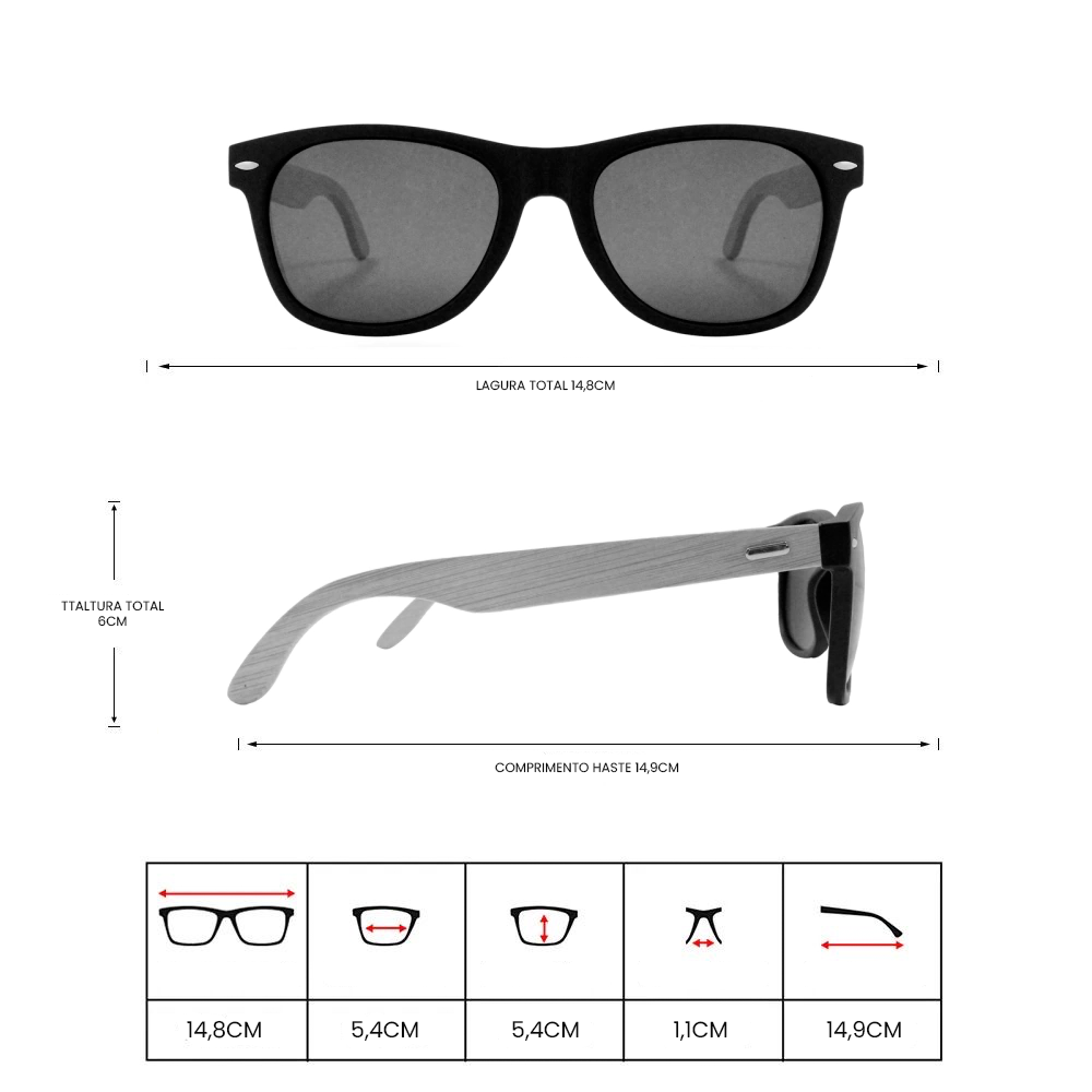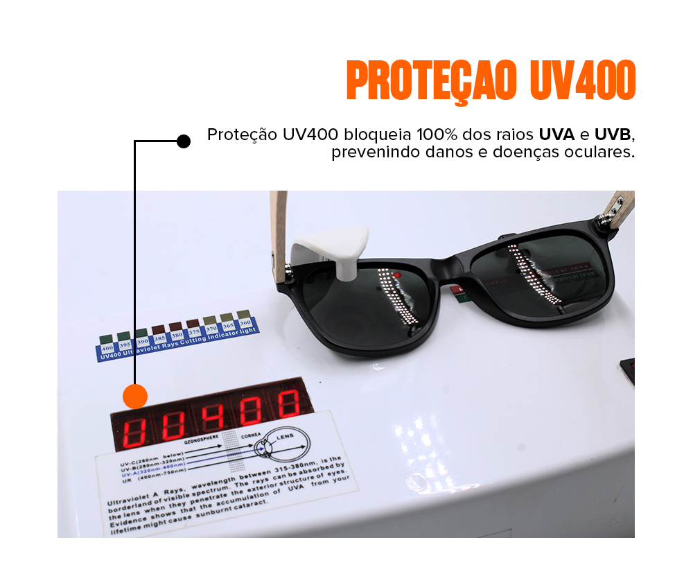 A armação é feita de Acetato, é protegida contra a corrosão.