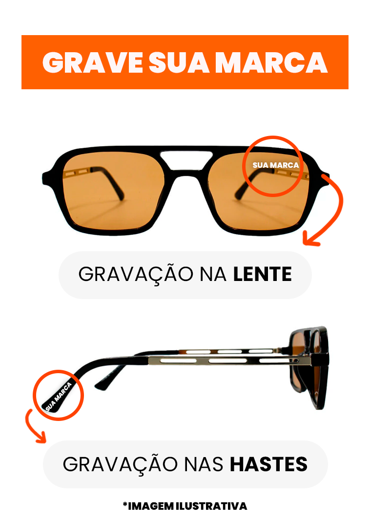 A armação é feita de acetato e metal, e é protegida contra a corrosão.