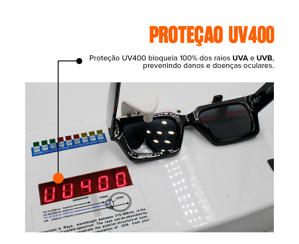 A armação é feita de Acetato, e é protegida contra a corrosão.
