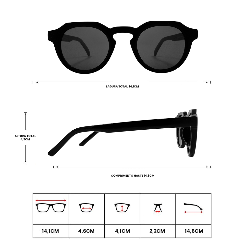 A armação é feita de Acetato, e é protegida contra a corrosão.