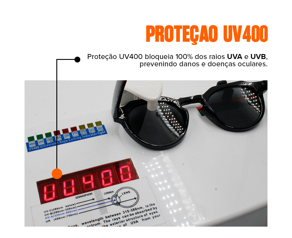 Nossos óculos são protegidos contra descascamentos provocados por suor e água.
