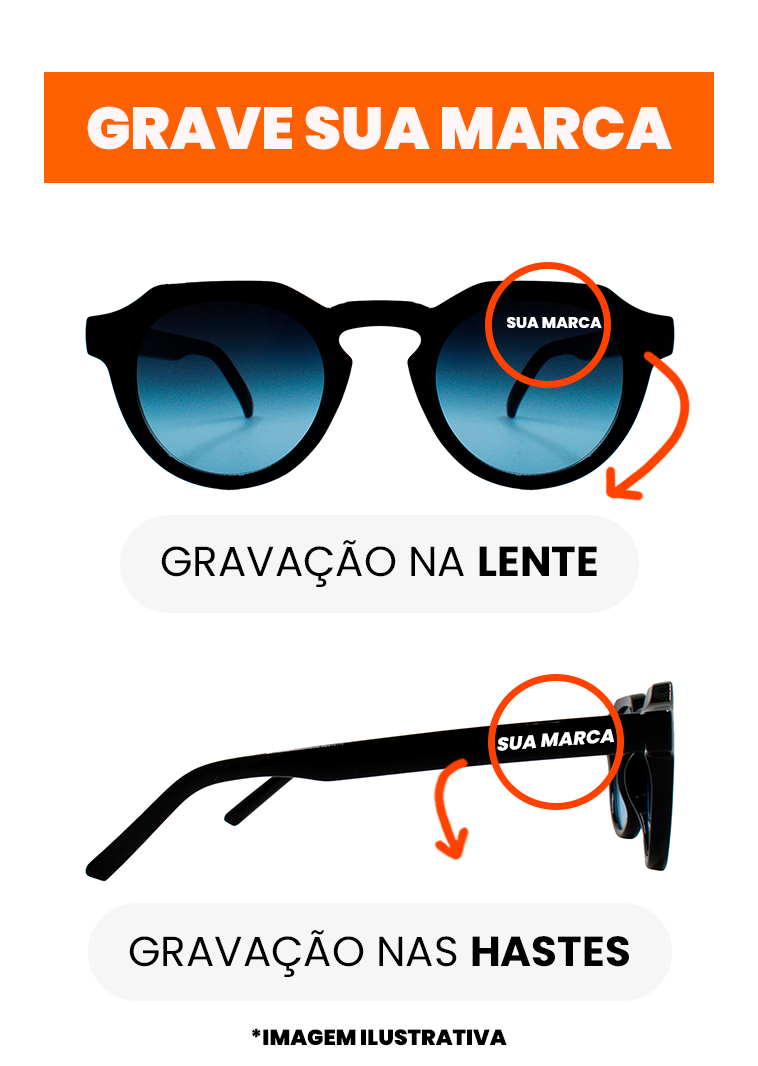 A armação é feita de Acetato, e é protegida contra a corrosão.