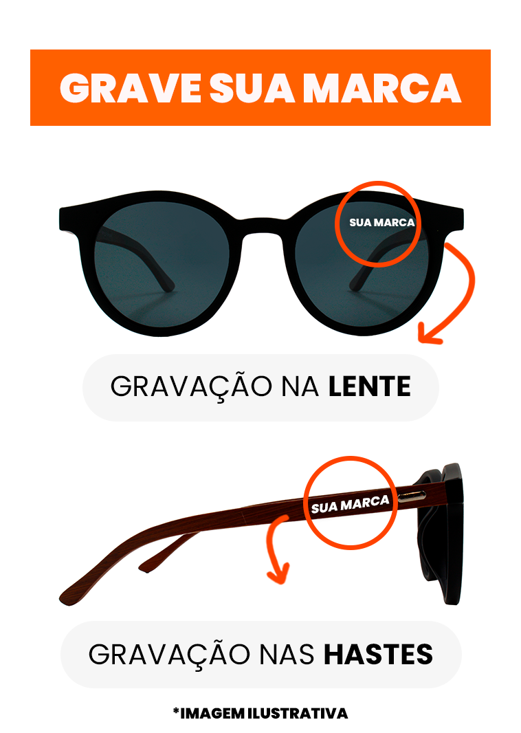 A armação é feita de Acetato e Madeira, e é protegida contra a corrosão.