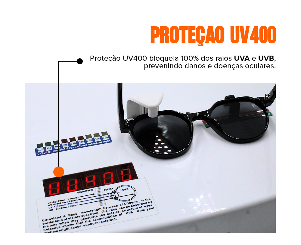 A armação é feita de Acetato e é protegida contra a corrosão.