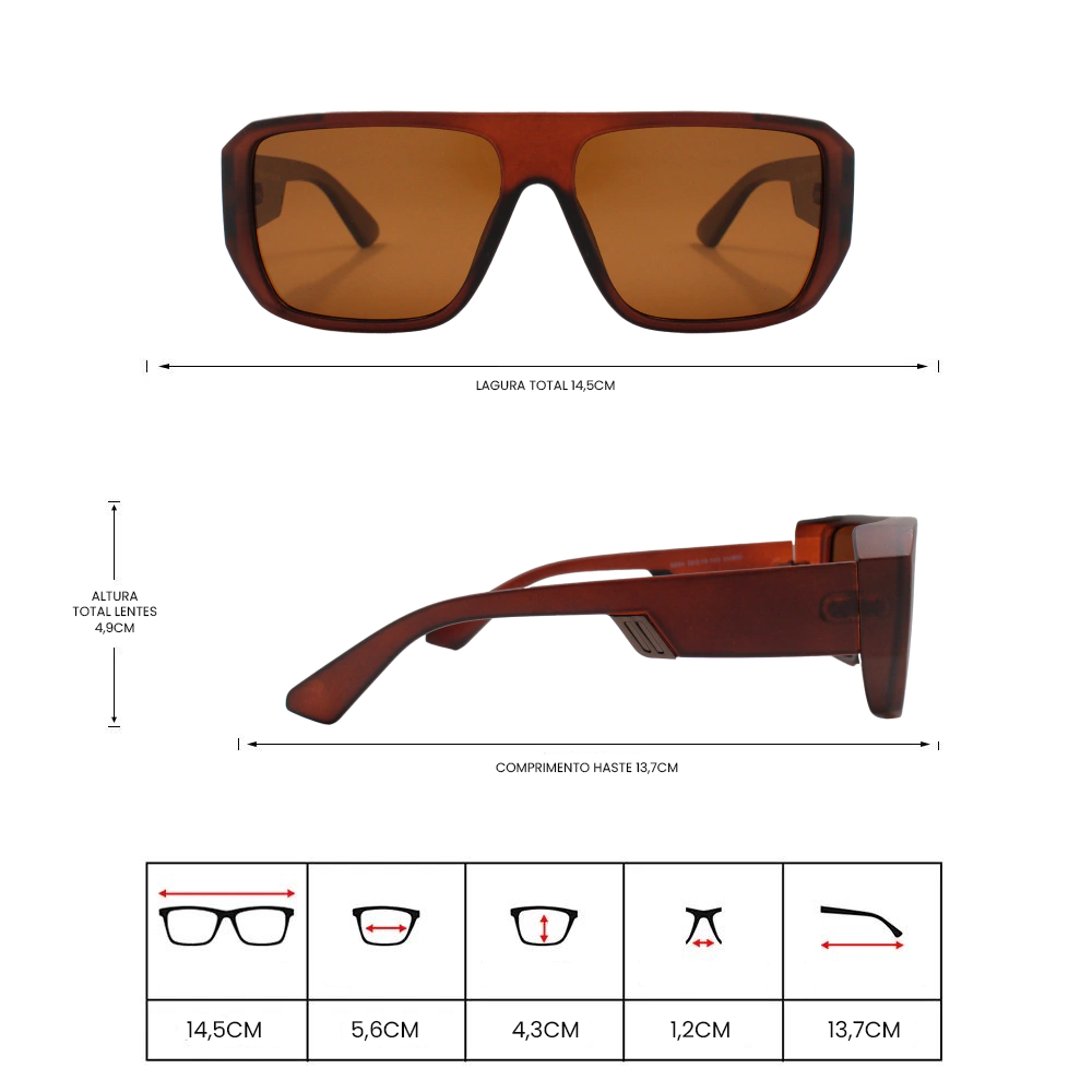 A armação é feita de Acetato, e é protegida contra a corrosão.