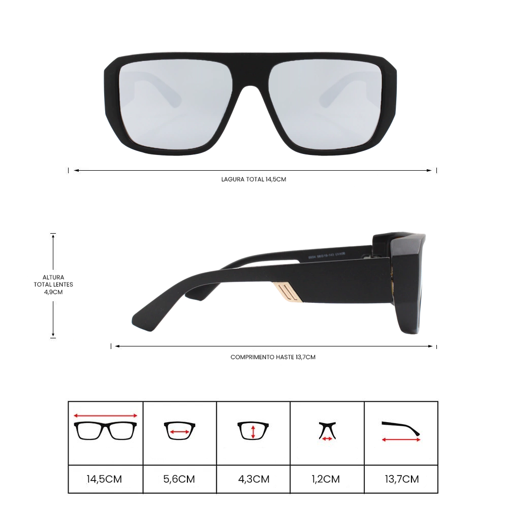 A armação é feita de Acetato, e é protegida contra a corrosão.