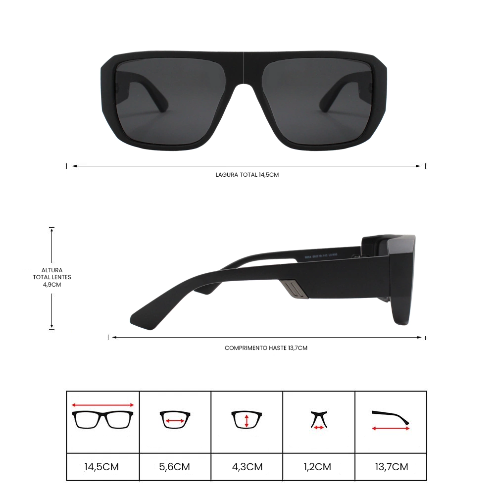 A armação é feita de Acetato, e é protegida contra a corrosão.